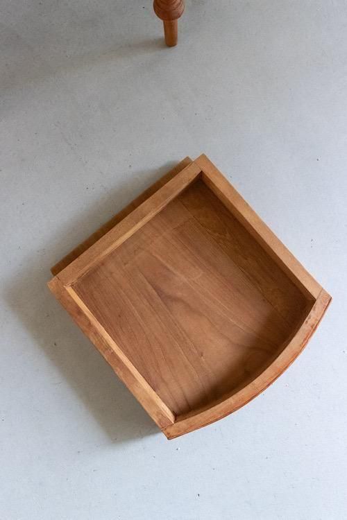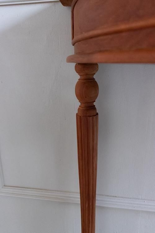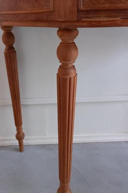 繊細な脚の装飾と柔らかな木肌が印象的な、