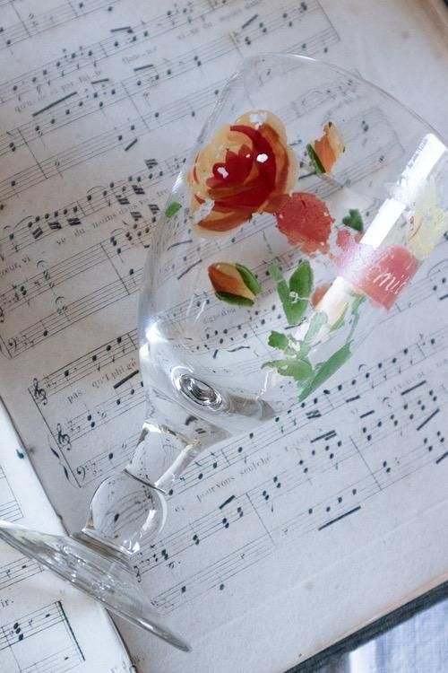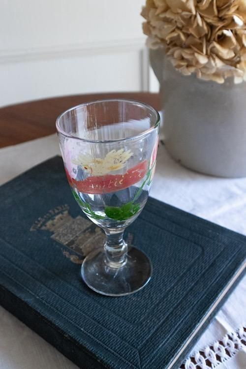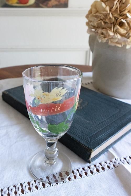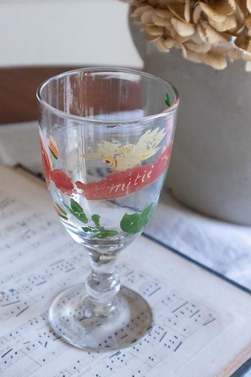 素朴で温かなタッチの絵付けが施されたフランスのグラス。