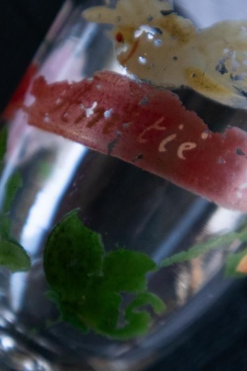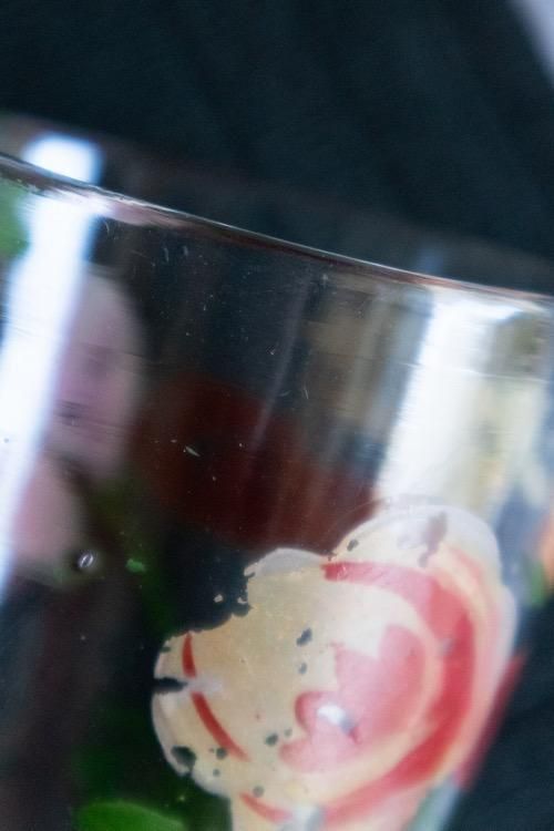 筆跡の揺らぎや色のかすれも、このグラスならではの表情。